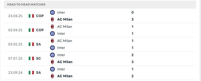 - Inter Milan 2-2 AC Milan(Full-Time)