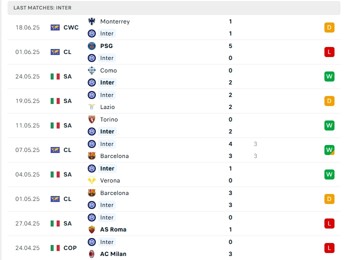 - Phong độ Inter Milan