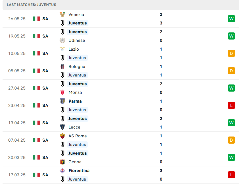 Phong độ gần đây Juventus vs Wydad Casablanca