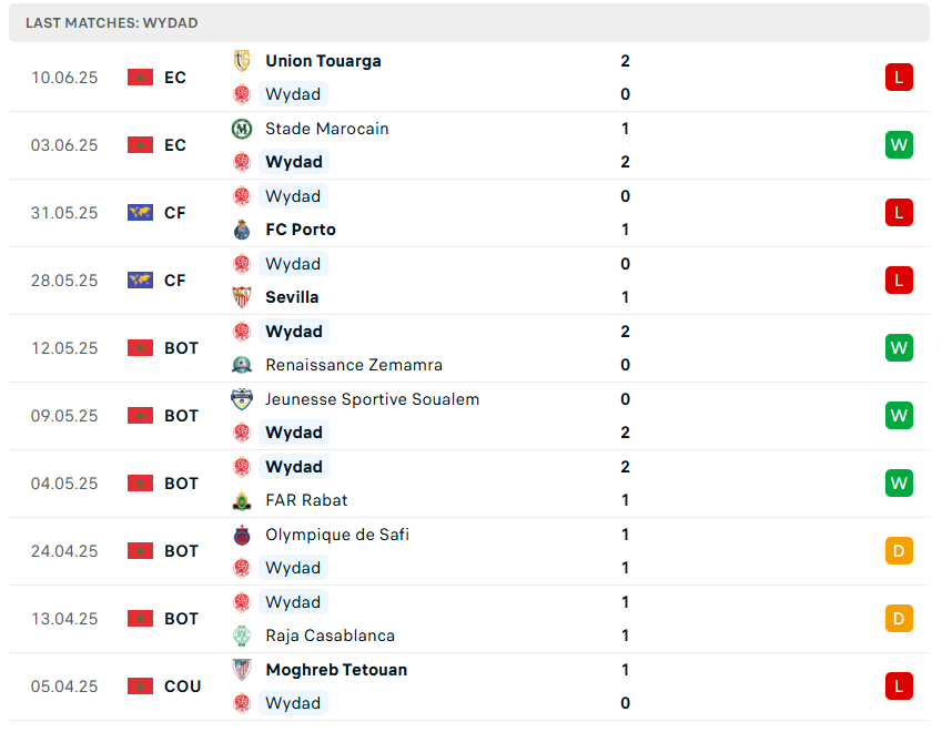 Wydad Casablanca là đại diện đến từ Morocco, họ bị đánh giá thấp nhất bảng đấu này, rơi vào bảng đấu khó khi có đến 2 đại diện đến từ châu âu khiến cho cơ hội đi tiếp của Wydad Casablanca là không nhiều. Ở lượt đấu đầu tiên thì họ đã ném trãi thất bại trước Manchester City, chính vì vậy để duy trì cơ hội đi tiếp thì họ cần có điểm ở lượt đấu thứ 2 này. Tuy vậy nhiệm vụ của họ là vô cùng khó khăn bởi đối thủ được đánh giá cao hơn nhiều. Dù cố gắng nhưng khó để Wydad Casablanca có thể hoàn thành mục tiêu mà họ đặt ra.