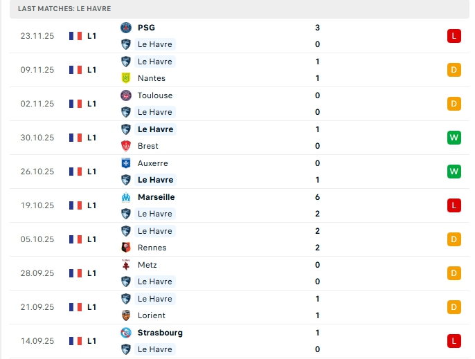 - Phong độ Le Havre