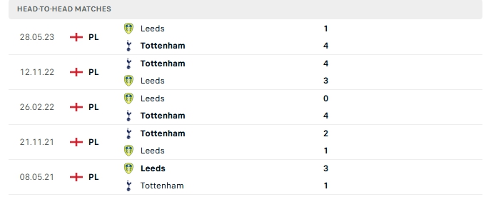 Những màn đụng độ giữa Leeds Utd và Tottenham thường diễn ra hấp dẫn với nhiều bàn thắng được tạo ra, cụ thể ở 5 lần gặp nhau gần nhất và cả 5 lần đón tiếp Tottenham trên sân nhà của Leeds Utd khép lại trên 3 bàn.