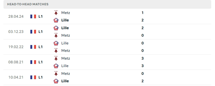 4/5 lần đón tiếp Metz trên sân nhà của Lille khép lại không quá 2 lần lưới rung, việc các vị khách Metz chủ động chơi phòng ngự trong khi Lille cũng không quá tấn công ào ạt thì 90 phút sắp tới dự đoán sẻ là kịch bản không quá nhiều bàn thắng.