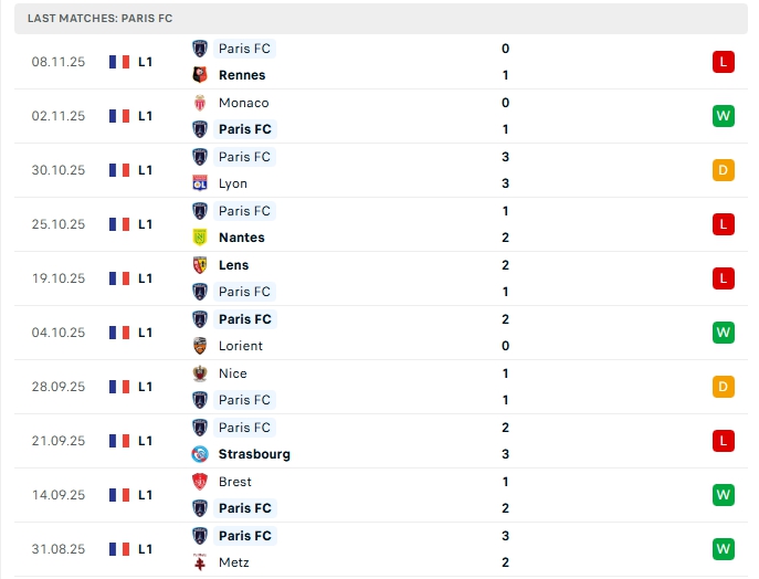 Bên kia sân, Paris FC sau 12 trận đấu họ có được 4 chiến thắng, 2 hòa và 6 thất bại, có được 14 điểm và đang xếp vị trí thứ 11 trên BXH, phong độ thời gian qua của Paris FC là không tốt, họ chỉ thắng 1, hòa 1 và thua 3 ở 5 trận gần nhất, khi thi đấu xa nhà Paris FC mang về 2 chiến thắng, 1 hòa cùng 2 thất bại sau 5 trận đấu.
