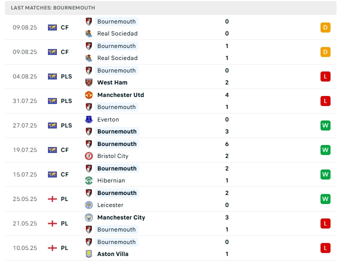 Bournemouth khép lại mùa giải vừa qua với vị trí thứ 9 trên BXH, một thành tích ấn tượng với đội bóng chỉ đặt mục tiêu trụ hạng, để chuẩn bị cho mùa giải năm nay, Bournemouth có cho mình 7 trận giao hữu, trong đó thành công mang về 13 bàn thắng cùng hàng thủ nhận 10 bàn thua, 4/7 trận đấu đó khép lại 90 phút từ 3 bàn trở lên, khi thi đấu xa nhà Bournemouth ở 4/5 trận vừa qua của họ cũng khép lại từ 3 bàn trở lên.