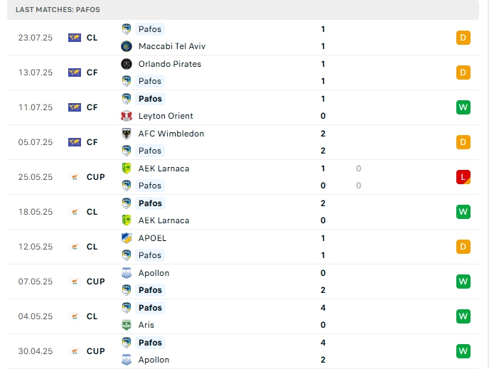Pafos là đại diện đến từ Cyprus, lối chơi của đội bóng này thiên về phòng ngự số đông, 4/5 trận gần nhất của họ khép lại 90 phút không quá 2 bàn thắng, 4/5 trận xa nhà của họ cũng có kết quả tương tự, việc hành quân đến sân của đối phương buộc Pafos sẻ tiếp tục với lối chơi phòng ngự của mình.