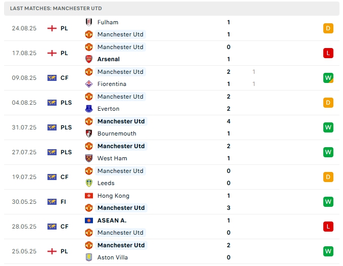 Man Utd ở trận ra quân họ đã gây thất vọng khi để Arsenal đánh bại, sau đó họ tiếp tục chơi tệ khi để Fulham cầm hòa, với chỉ 1 điểm sau 2 lượt trận thì Man Utd đang xếp ở vị trí thứ 16 trên BXH, phong độ thời gian qua của Man Utd là không tốt, dù vậy trên sân nhà Man Utd, hứa hẹn sẻ có kết quả tốt trong trận đấu tới khi họ có được 3 chiến thắng, 1 hòa và 1 thất bại.