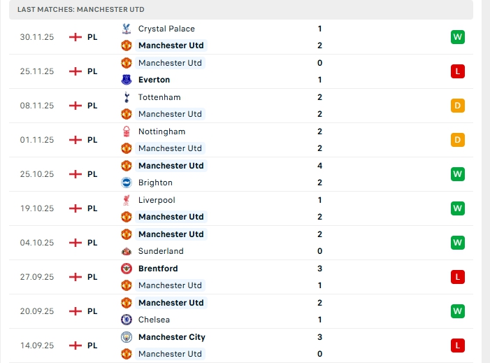 Man Utd sau 13 lượt trận họ có 6 chiến thắng, 3 hòa và 4 thất bại, có được 21 điểm và đang xếp vị trí thứ 7 trên BXH, Man Utd ở vòng đấu gần nhất họ có chiến thắng 2-1 trước Crystal Palace, chiến thắng này chấm dứt chuỗi 3 trận không thắng trước đó, tính rộng ra, quỷ đỏ chỉ thua 1 ở 7 trận gần nhất với 4 chiến thắng cùng 2 hòa, trên sân nhà đoàn quân của HLV Ruben Amorim đang chơi tốt với 4 chiến thắng ở 5 trận vừa qua.