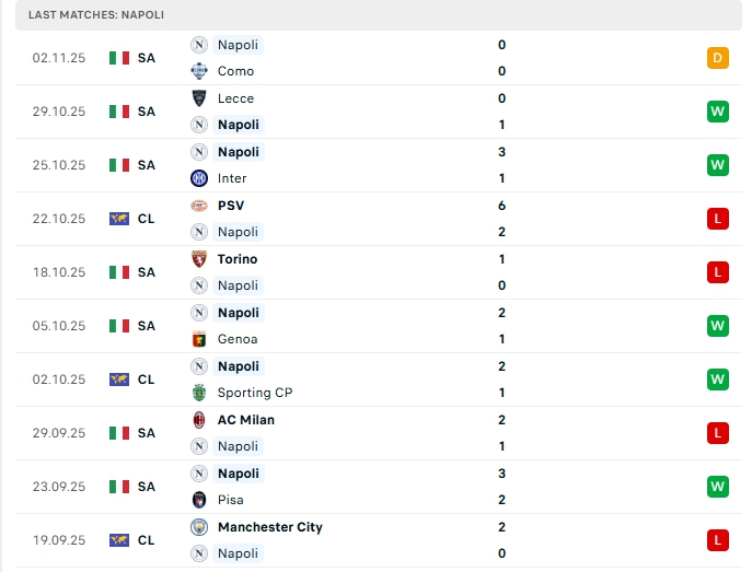 Napoli có sự chuẩn bị tốt cho màn đụng độ Napoli khi họ vừa có chuỗi 3 trận bất bại ở đấu trường Serie A, trong đó có 2 chiến thắng cùng 1 hòa, ở đấu trường Champions League, sau 3 trận đấu Napoli đang có được 1 chiến thắng cùng 2 thất bại, họ đánh bại Sporting Lisbon nhưng để thua trước PSV và Man City, có được 3 điểm và đang xếp vị trí thứ 23 bảng đấu, phong độ thời gian qua của Napoli là khá tốt, đặc biệt trên sân nhà họ đang bất bại với chuỗi trận lên con số 10, trong đó có 8 chiến thắng cùng 2 hòa.