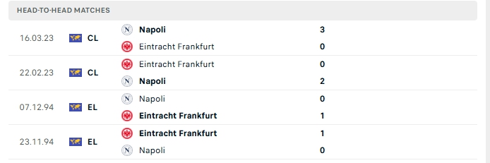 Lịch sử đối đầu của Napoli vs Eintracht Frankfurt