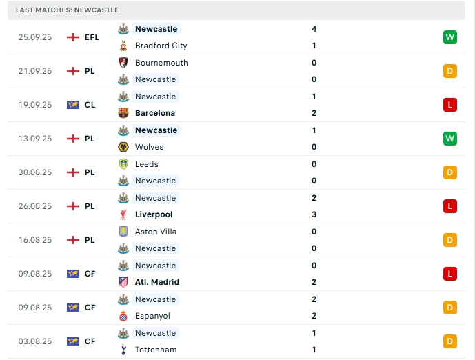 Newcastle ở 5 vòng đấu đầu tiên, họ mang về 1 chiến thắng, 3 hòa và 1 thất bại, họ có được 6 điểm và đang xếp vị trí 13 trên BXH, ở vòng đấu gần nhất Newcastle chỉ có trận hòa trước Bournemouth, phong độ thời gian qua của Newcastle là không tốt, đặc biệt trên sân nhà họ thua 3 trong 5 trận gần nhất.