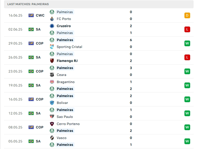 Phong độ gần đây Palmeiras vs Ahly Cairo