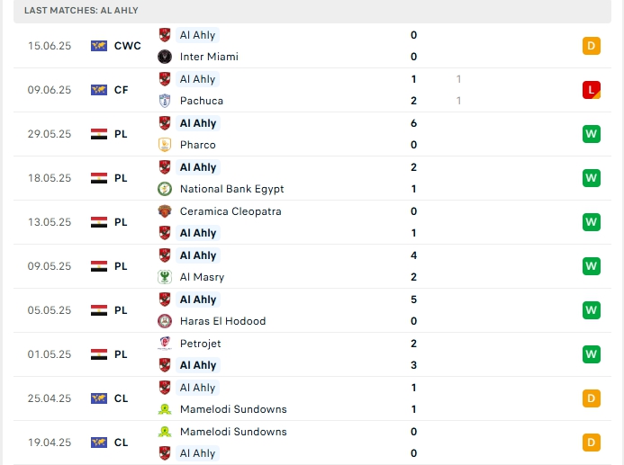 Ahly Cairo ở lượt trận đầu tiên, đại diện Ai Cập dù chơi tốt và tạo được nhiều cơ hội trước Inter Miami nhưng lại không thể tận dụng cơ hội để tìm kiếm chiến thắng, hàng công cũng đang là vấn đề với Ahly Cairo, họ không cho thấy khả năng dứt điểm và kết thúc tốt ở những thời điểm quan trọng.