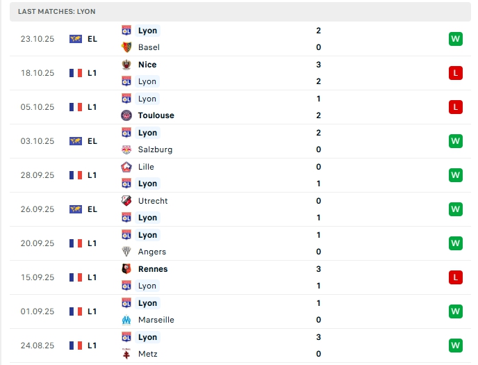 Lyon sau 8 vòng đấu, hàng công đội bóng này mang về 11 bàn thắng, cùng hàng thủ nhận 8 bàn thua, 3/5 trận vừa qua của Lyon ở đấu trường Ligue 1 khép lại từ 3 bàn trở lên, khi thi đấu xa nhà ở 5 trận gần nhất thì hàng công có được 6 bàn thắng cùng hàng thủ nhận 6 bàn thua.