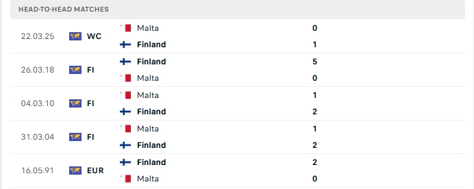 Lịch sử đối đầu của Phần Lan vs Malta