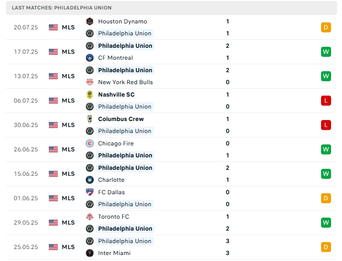 - Phong độ Philadelphia Union