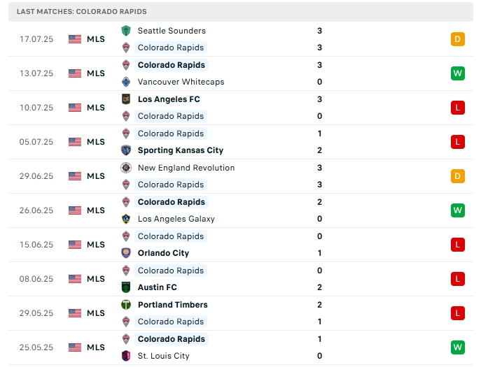 - Phong độ Colorado Rapids
