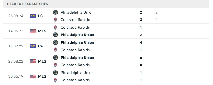 Lịch sử đối đầu của Philadelphia Union vs Colorado Rapids