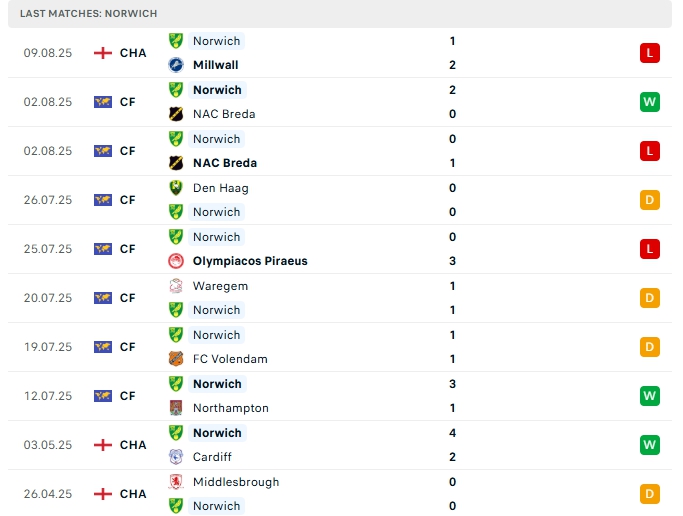 Norwich đang không có được sự chuẩn bị tốt, dù có đến 7 trận giao hữu nhưng đội bóng này chỉ có 2 chiến thắng, thất bại 1-2 trong ngày ra quân khiến Norwich đánh mất nhiều sự tự tin, 4/5 trận vừa qua của Norwich khép lại 90 phút không quá 2 bàn và 3/5 trận xa nhà cũng có kết quả tương tự.