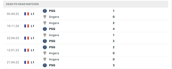 Những màn đụng độ giữa PSG và Angers thường diễn ra với thế trận một chiều, PSG chơi lấn lướt và tạo nhiều cơ hội, dù vậy ở 4/5 lần gặp nhau gần nhất khép lại 90 phút không quá 3 bàn thắng và 3/5 lần đón tiếp Angers trên sân của PSG cũng tương tự.