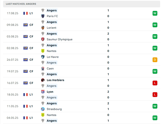 - Phong độ Angers