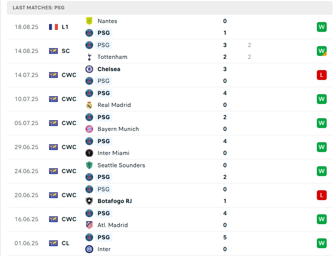 Phong độ gần đây PSG vs Angers