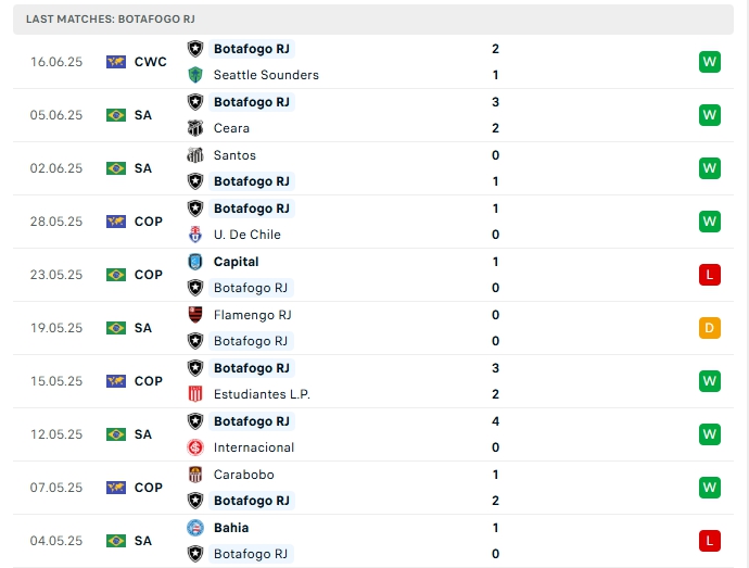 Botafogo có trận ra quân ấn tượng khi giành chiến thắng 2-1 trước Seattle Sounders, nhưng họ chắc chắn sẻ đối diện với thử thách cực đại trước PSG, hàng công của Botafogo thi đấu khá tốt với 7 bàn thắng ở 4 trận gần nhất, cùng hàng thủ nhận 3 bàn thua, 2/3 trận vừa qua của Botafogo khép lại 90 phút từ 3 bàn trở lên.
