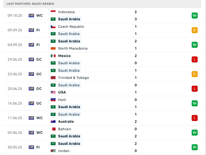 Phong độ gần đây Ả Rập Xê Út vs Iraq