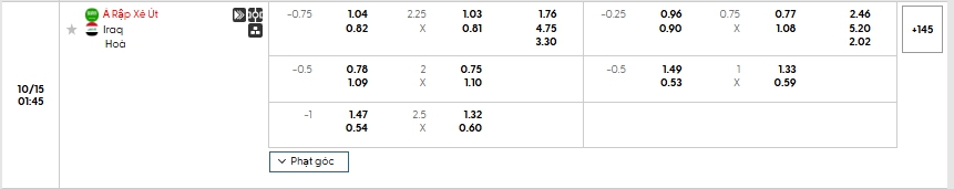 - Chọn Ả Rập Xê Út -0.75 (Full-Time)
