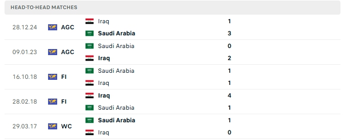 Những màn đụng độ giữa Ả Rập Xê Út và Iraq thường diễn ra chặt chẻ với ít bàn thắng được tạo ra, 3/5 lần gặp nhau gần nhất của hai đội và 4/5 lần đón tiếp Iraq trên sân của Ả Rập Xê Út khép lại không quá 2 bàn.