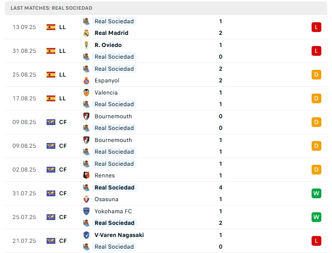 • Phong độ Real Sociedad