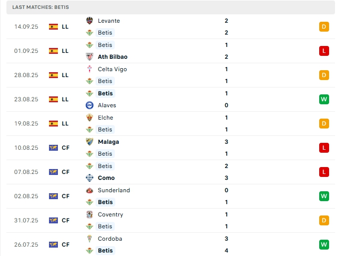 • Phong độ Real Betis
