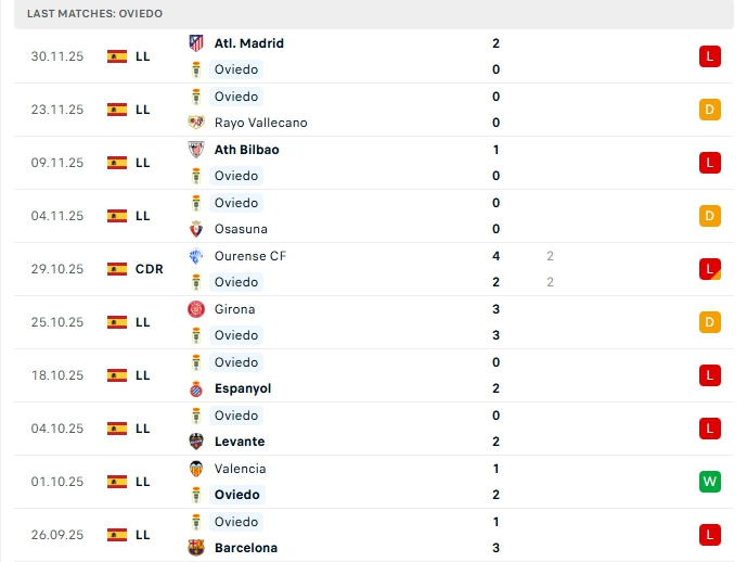 - Phong độ Real Oviedo
