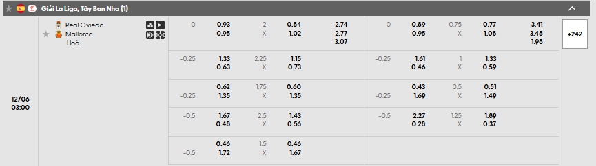 Bảng tỷ lệ kèo bóng đá trận đấu Real Oviedo vs Mallorca