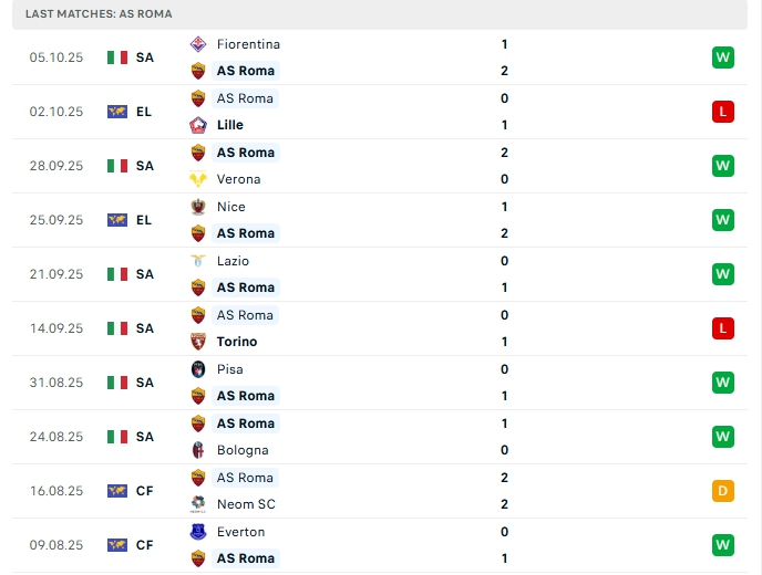 Roma sau 6 trận đấu, đội bóng này mang về 7 bàn thắng cùng hàng thủ chắc chắn khi chỉ nhận 2 bàn thua, hàng thủ chơi chắc chắn nên những trận đấu của Roma có xu hướng ít bàn thắng, 4/5 trận ở Serie A vừa qua khép lại không quá 2 bàn, trên sân nhà ở 4/5 trận gần nhất cũng tương tự.