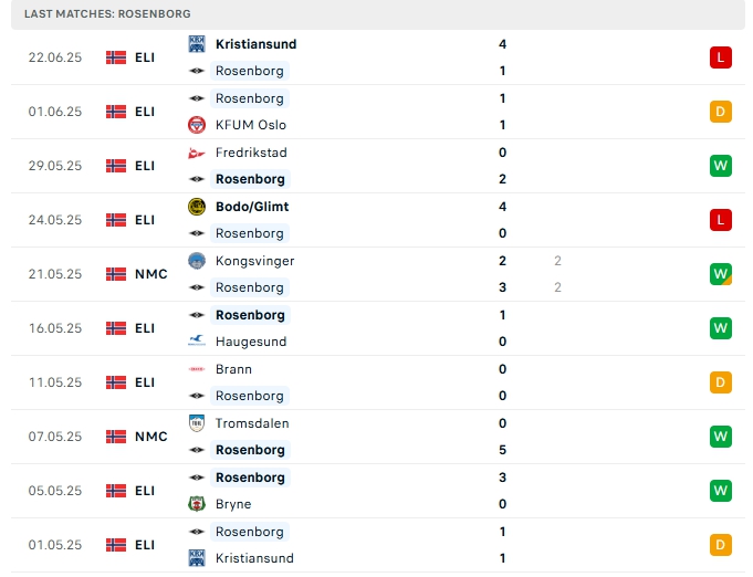 Rosenborg sau 12 trận đấu có cho mình 6 chiến thắng, 4 hòa cùng 2 thất bại, có được 22 điểm và đang xếp thứ 3 trên BXH, Rosenborg đang trải qua chuỗi 2 trận không thắng vừa qua khi hòa 1 và thua 1, dù vậy trên sân nhà của mình Rosenborg đang chơi tốt khi bất bại ở 6 trận gần nhất với 4 chiến thắng cùng 2 hòa.