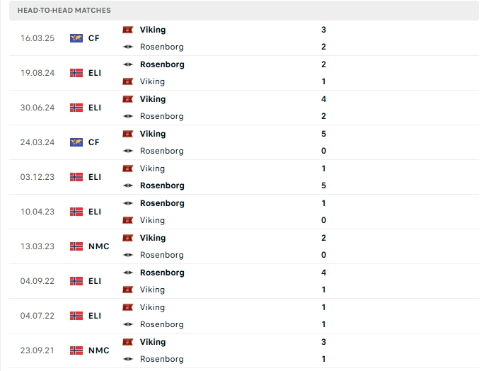 Những màn đụng độ giữa Rosenborg và Viking thường diễn ra hấp dẫn với nhiều bàn thắng được tạo ra, ở 7/10 lần gặp nhau gần nhất và 4/5 lần đón tiếp Viking trên sân nhà của Rosenborg khép lại 90 phút trên 3 bàn, một trận đấu được dự báo hấp dẫn.