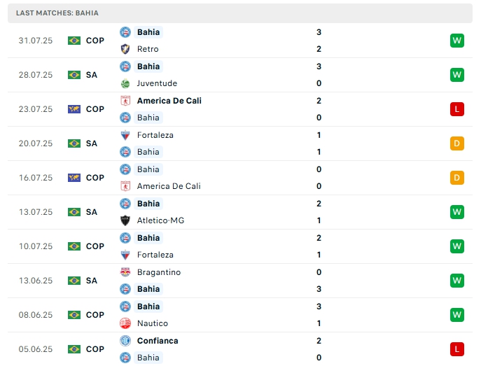 Phong độ gần đây SC Recife vs Bahia