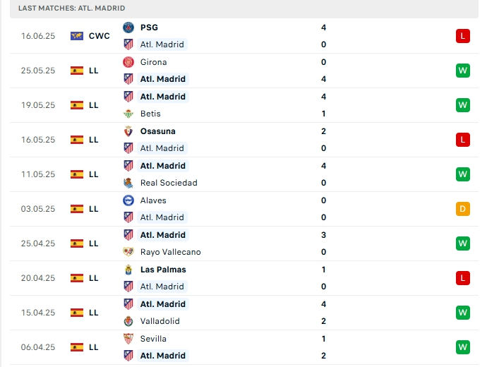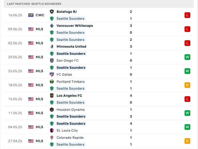 Phong độ gần đây Seattle Sounders vs Atletico Madrid