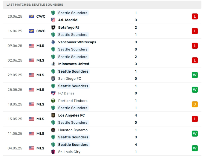 - Phong độ Seattle Sounders
