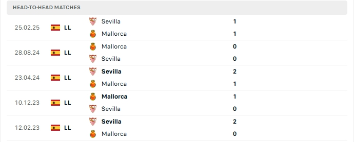 Lịch sử đối đầu của Sevilla vs Mallorca