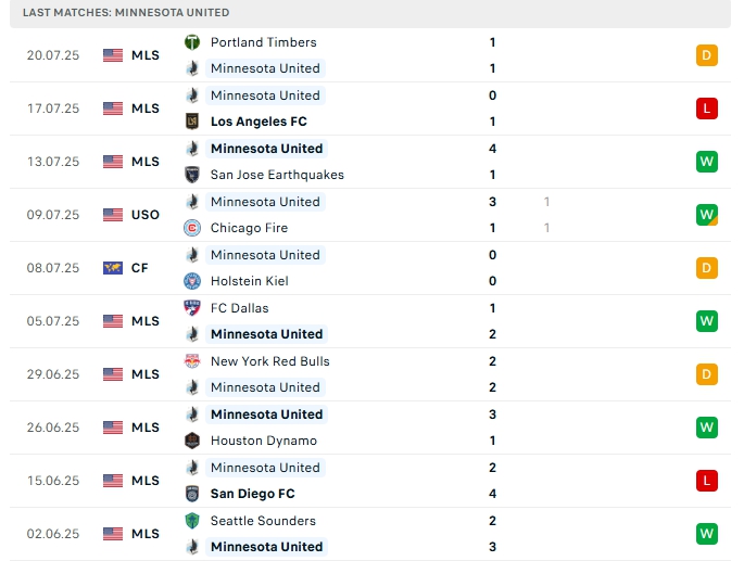 - Phong độ Minnesota Utd