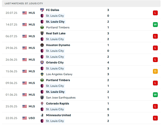 - Phong độ St. Louis City SC