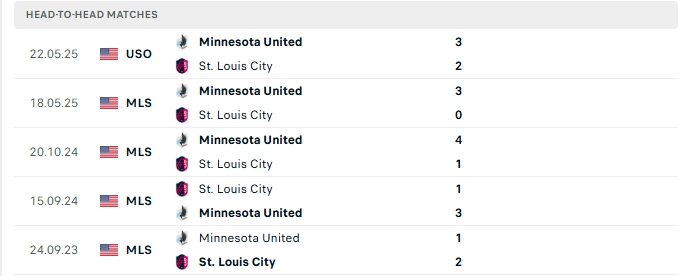 Lịch sử đối đầu của St. Louis City SC vs Minnesota Utd