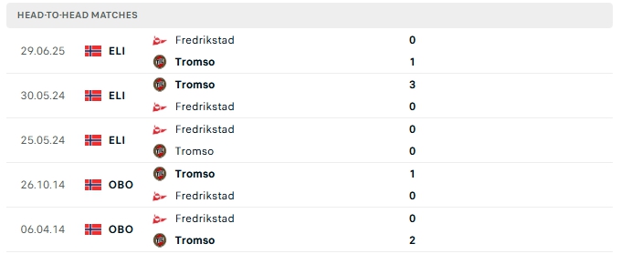 Lịch sử đối đầu của Tromso vs Fredrikstad