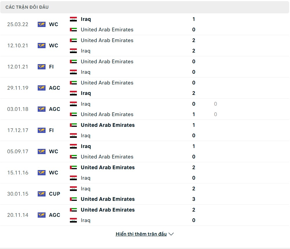 Bảng tỷ lệ kèo bóng đá trận đấu UAE vs Iraq