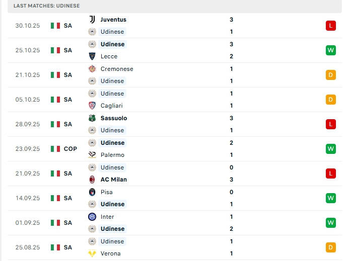 Udinese sau 9 trận đấu, đội bóng này mang về 11 bàn thắng cùng hàng thủ nhận 15 bàn thua, 3/5 trận vừa qua của Udinese khép lại từ 3 bàn trở lên, hàng công đang thi đấu tốt, dù vậy hàng thủ không quá chắc chắn, trên sân nhà của mình ở 3/5 trận gần nhất đều khép lại từ 3 bàn.