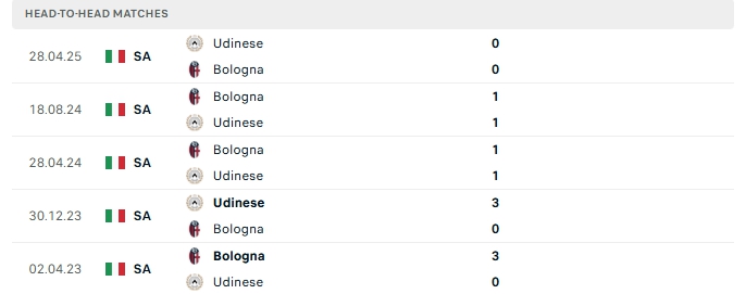 Những màn đụng độ giữa Udinese và Bologna thường diễn ra chặt chẻ với ít bàn thắng, 3/5 lần gặp nhau gần nhất của hai đội và 3/5 lần đón tiếp Bologna trên sân của Udinese khép lại không quá 2 lần lưới rung.