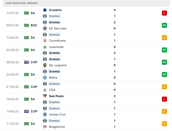 - Phong độ Gremio
