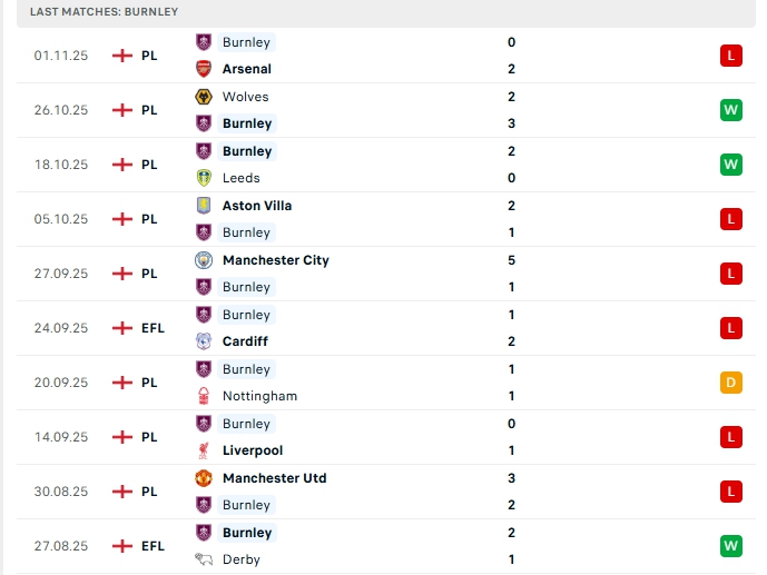 - Phong độ Burnley